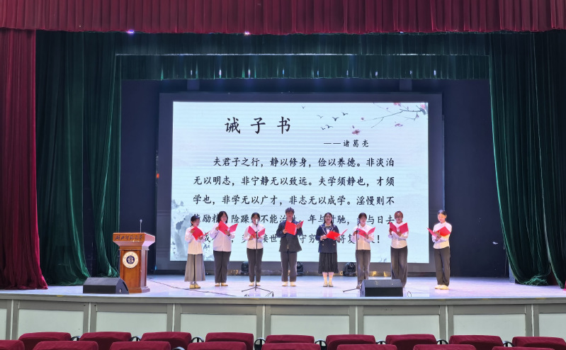 活动在全体与会人员的静默自省中拉开序幕。随后,一曲《感恩的心》缓缓响起,悠扬的旋律萦绕礼堂,温暖了每个人的心灵。在“诵经典”环节,城市与环境学院朗诵队深情诵读了诸葛亮的《诫子书》,声音铿锵有力、情感真挚动人,不仅传递出古代智者对后辈的谆谆教诲与殷切期望,也映照出千年来中华家风文化的深厚底蕴。