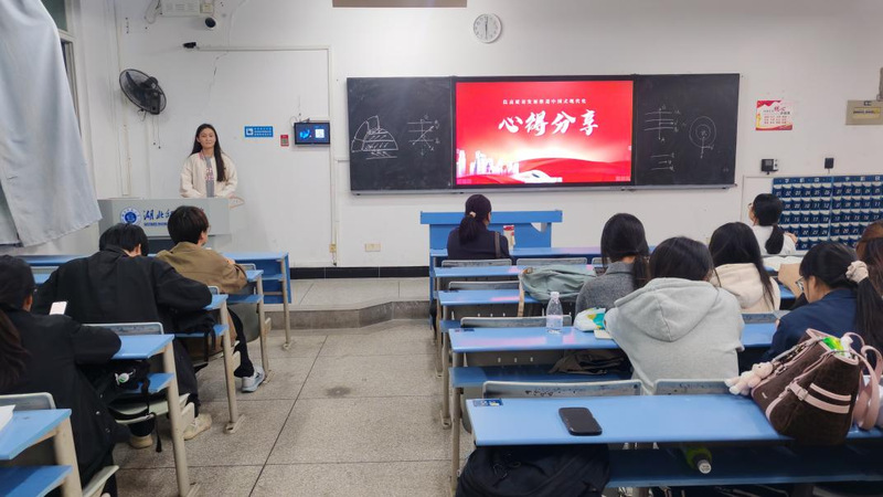 在分享交流环节,京伊斯古勒·哈力克同学结合班会主题与自身观察,畅谈了对“全体人民共同富裕的现代化”的理解。她表示,“城乡均衡发展”的理念可以从实习途中宜昌乡村的变迁中得到生动印证——特色农产品产销链条的完善、乡村文旅产业的兴起,让偏远地区群众共享发展成果。作为地理专业学生,未来将重点钻研区域发展规划知识,为不同地区因地制宜实现共同富裕贡献智慧。