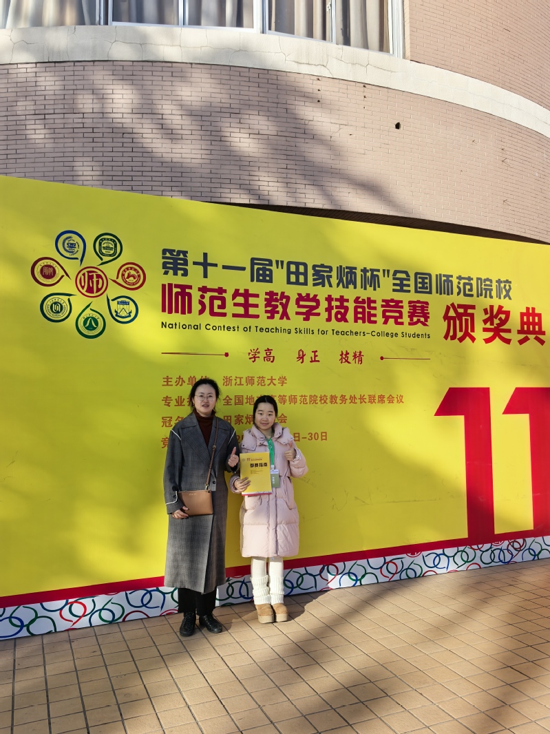 自师范类专业认证工作开展以来,我院始终将认证标准贯穿师范生培养全过程,不断完善“理论教学+实践训练+竞赛提升”的三位一体培养体系,着力提升师范生的教学实践能力与综合素养。此次全国一等奖的突破,既是对参赛学子个人努力的充分肯定,更是对我院师范生培养质量的有力检验。未来,我院将以此次获奖为契机,进一步加大师范生人才培养力度,持续完善教学技能培训平台,助力更多学子成长为高素质专业化教育工作者,为基础教育事业高质量发展贡献湖师力量。