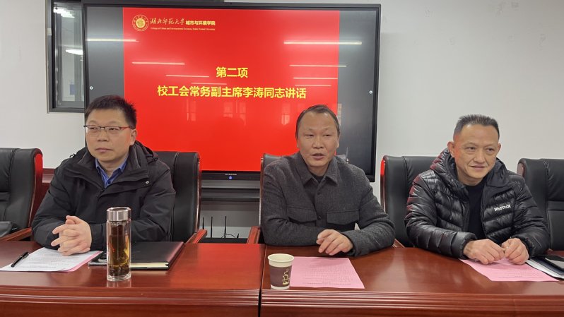 2025年12月18日下午,城市与环境学院分工会三届五次教职工代表大会暨换届选举大会在学院会议室隆重举行。大会分别由学院党委副书记、工会主席陈卓和学院党委书记杨应华主持,全体教职工代表齐聚一堂,共商学院发展大计并圆满完成换届选举工作。会议在庄严的国歌声中拉开帷幕。